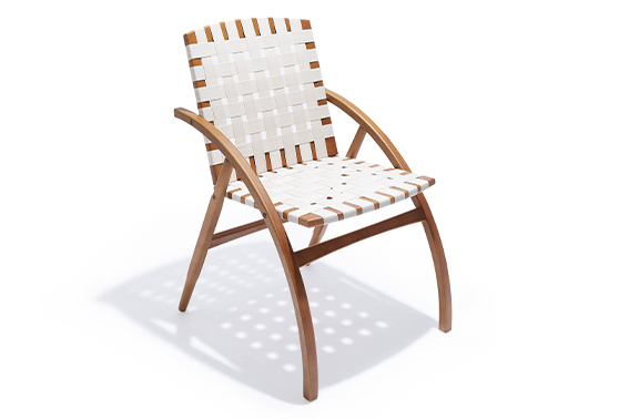 Cadeira Flexa, por Carlos Motta - Criada em 1979 pelo designer Carlos Motta, a Cadeira Flexa foi pensada para uso junto à mesa de jantar ou de trabalho. Os quadros do assento e do encosto são revestidos por trançado de percintas de couro natural ou algodão. Esses quadros são estruturados por um arco de laminado de madeira moldada que se repete de forma idêntica em toda a linha. Além desta cadeira, a coleção inclui a Cadeira Flexa Média, a Cadeira Flexa Longa e o Banco de Apoio Flexa.