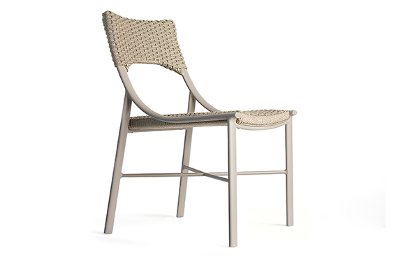 Cadeira Lua, por Lattoog - Ao projetar a cadeira Lua em alumínio e cordas náuticas ou fibras sintéticas, os designers da Lattoog buscaram uma identidade própria para a peça, com sua estrutura ora reta, ora curva e uma robustez particular dela atingido pelo uso de um perfil de metal eliptico. O dialogo entre retas e curvas e materiais diversos.