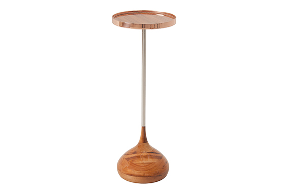 Mesa Lateral Gota, por Lattoog - Como gotas de madeira... Com essa percepção em mente, foi projetada esta série de objetos de formas simples e fluidas que são definidas pela superposição de materiais variados como madeira torneada, cobre, aço inox, madeira laqueada. Neste conjunto, além dos materiais, diversos usos também se sobrepõem: Mesa lateral, bandeja, castiçal, porta incenso - sempre de modo independente e complementar. Cada peça tem dimensões bem reduzidas e pode ser vendida individualmente- como uma jóia... como um objeto de desejo... Como uma gota de madeira. A série completa é composta pela Mesa Pingo; Mesa Drop; Mesa Gota e Candelabro Chama.